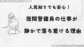 特に早朝や夜間勤務は、他のスタッフに会うこと自体が少なく、一人時間で完結する仕事です。