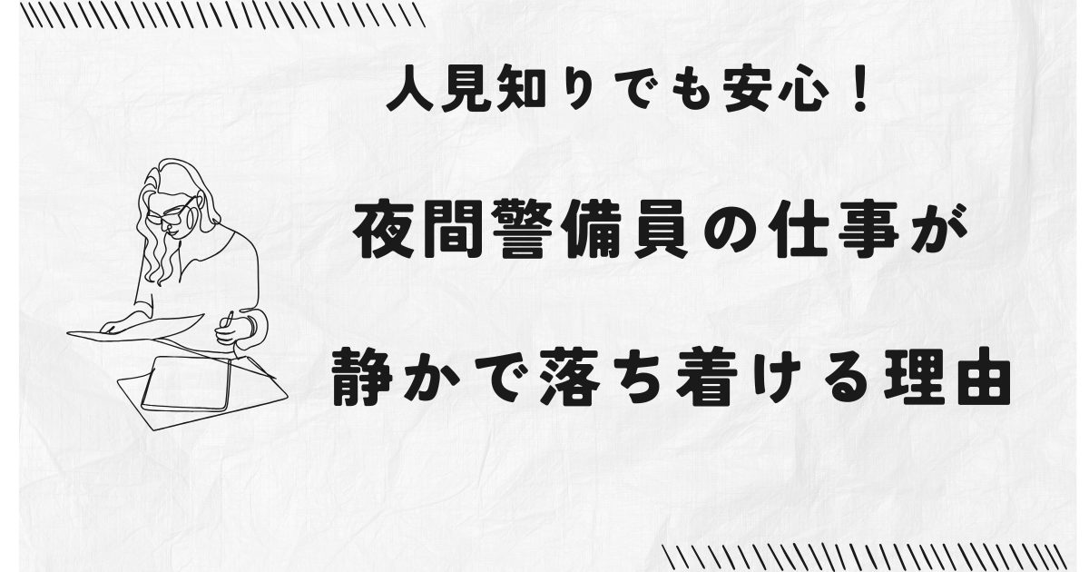 夜間警備員や施設管理の仕事は、一見すると「誰でもできそう」と思われがちですが、実際には性格や適性によって働きやすさが大きく変わります。特に人見知りの人にとっては、過剰なコミュニケーションを求められず、自分のペースで働ける点が大きな魅力です。ここでは、この仕事に本当に向いている人の特徴を詳しく紹介します。